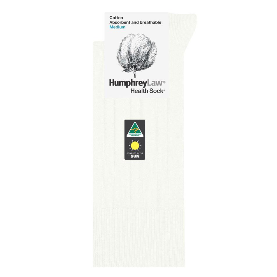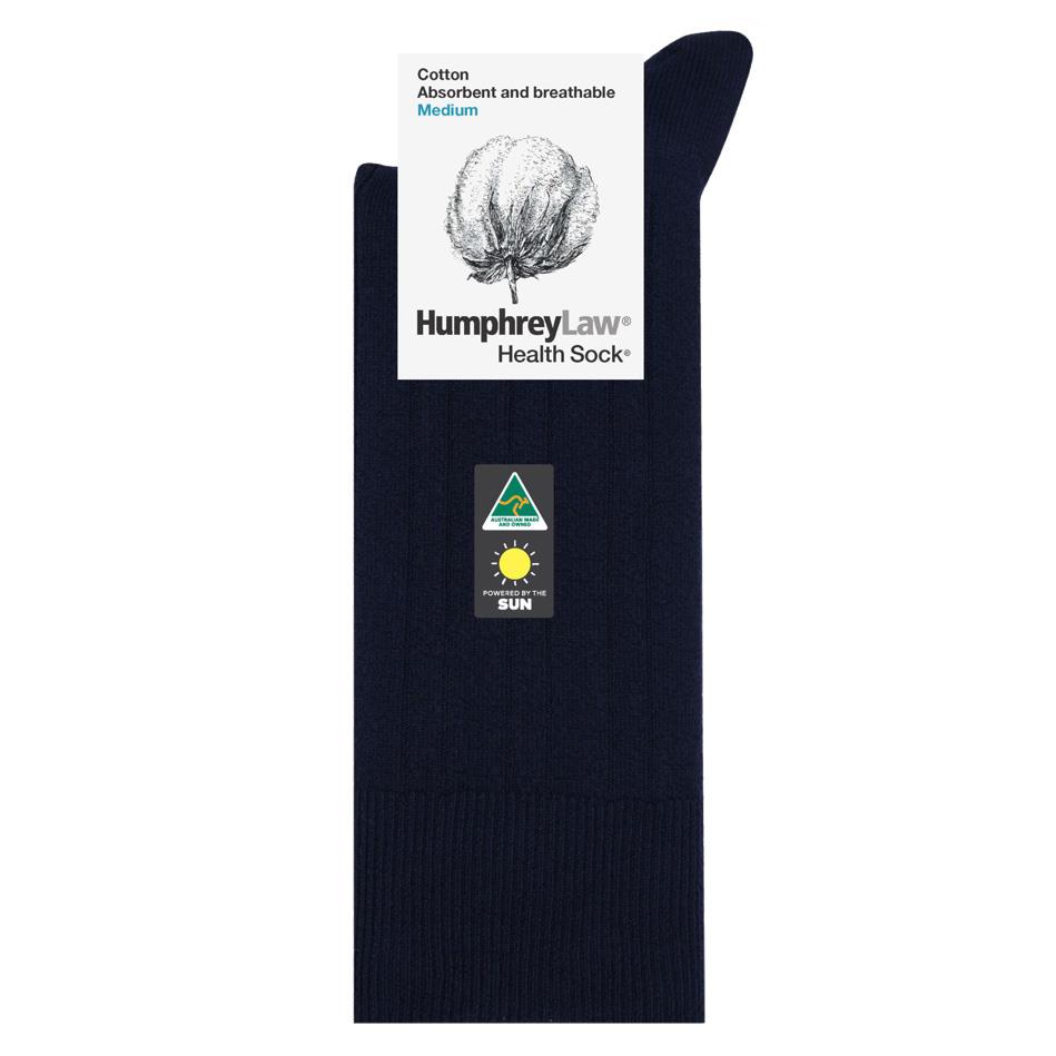 A Men's medium weight hardwearing mercerised cotton sock for maximum comfort in hot conditions. The sock has elegant ribs, which facilitate air circulation around the feet to keep them cool and comfortable. An excellent business sock with a relatively thick yet open cotton knit. A Health SockĀ® with no tight elastic top.