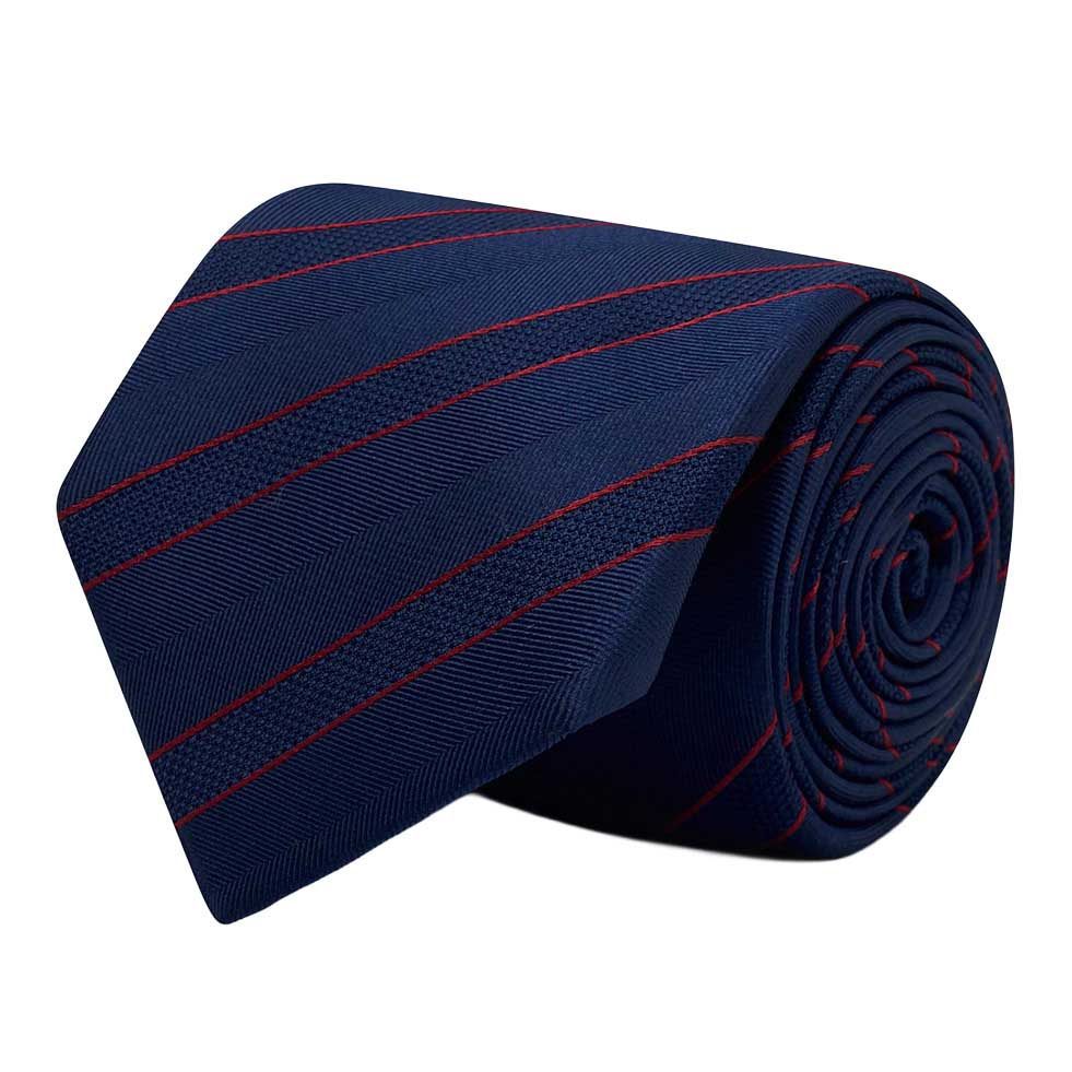 The Blackmere Tie is crafted from 100% silk and thoughtfully designed by M.J. Bale. Finished with blue and white stripe silk tipping, it offers a refined detail that complements classic tailoring.