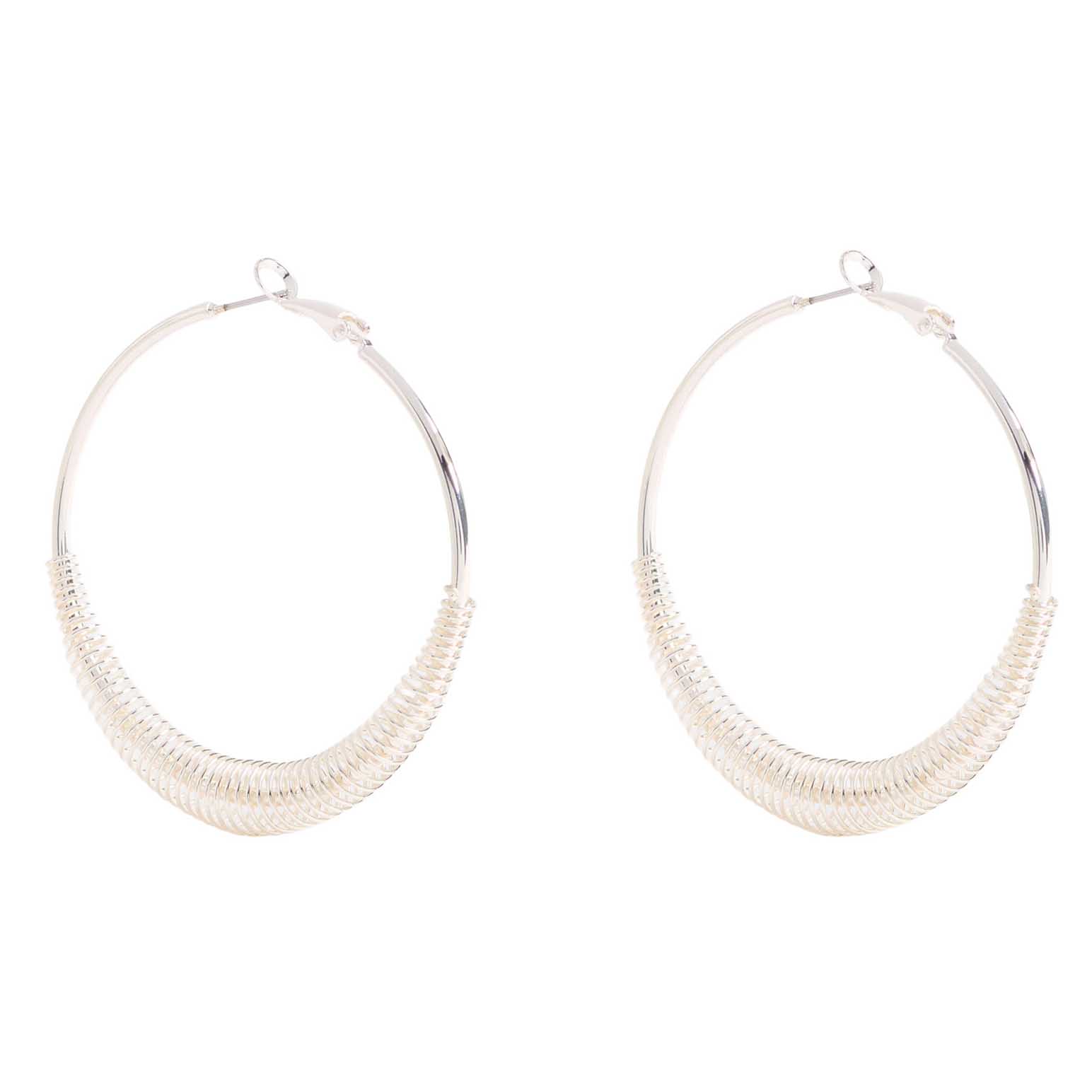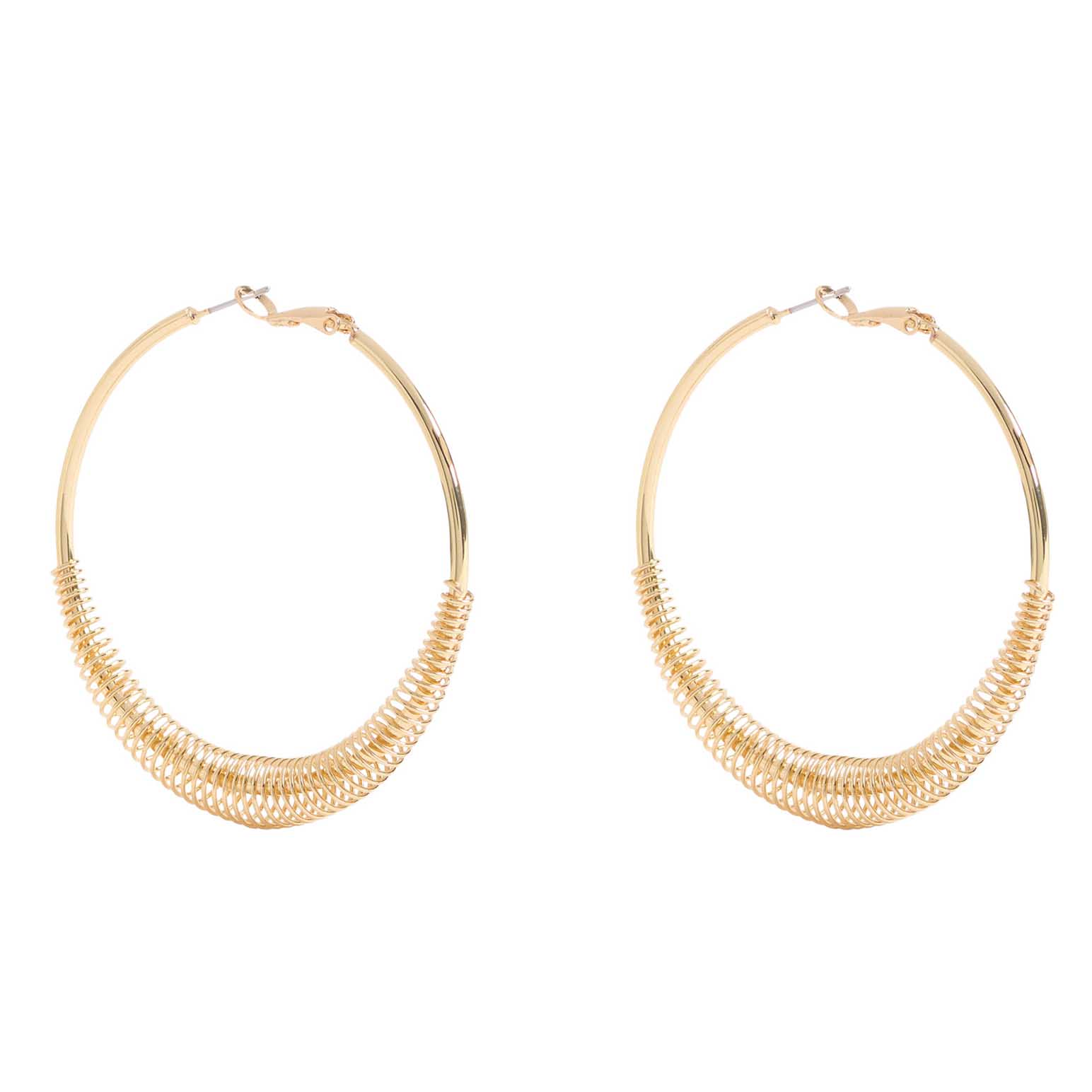 Classic metal hoop with spring coil feature looped through hoop -large yet Lightweight hoop style with omega hook backing -metallic version of rubberised Solf hoop from S24 collection