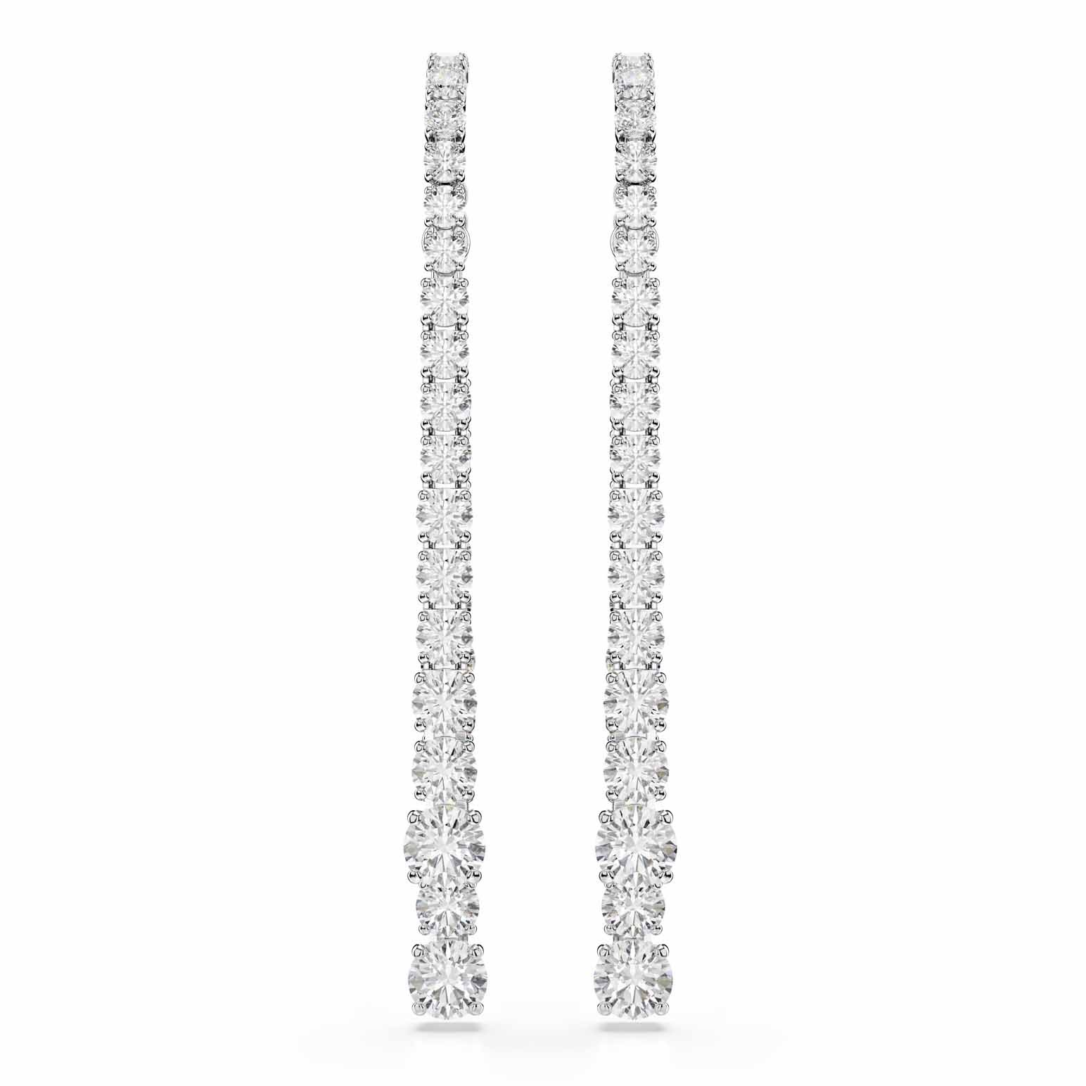 These dramatic trails of light are the perfect showcase of Swarovski’s illuminating style. Each rhodium plated piece features two strands of Swarovski Zirconia, presented in a clear hue and a rising gradient of sizes. The effect is both elegant and bold, giving you an expressive pair of pierced earrings for any special occasion.