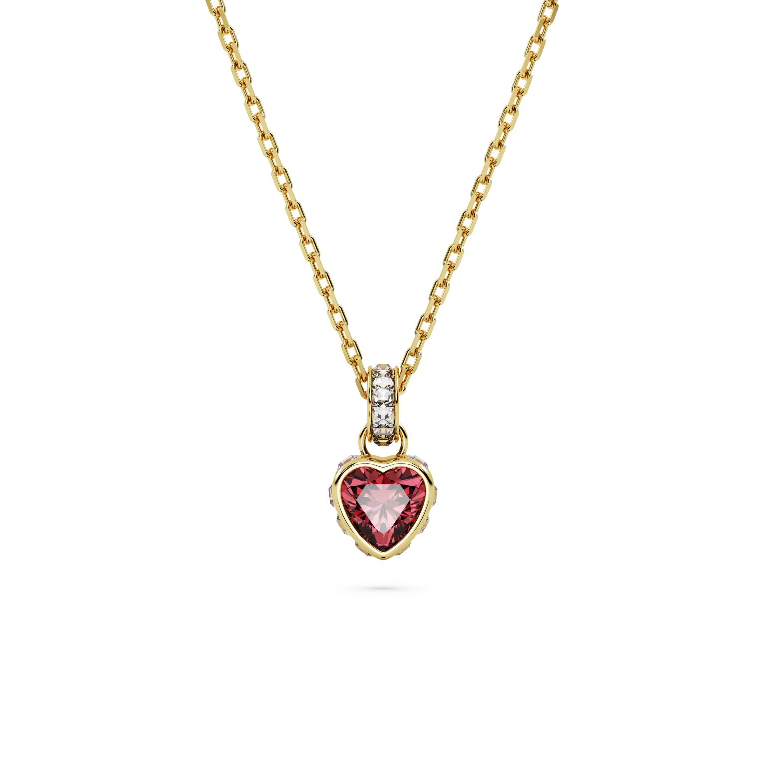 If you adore heart-shaped jewelry, this pendant from the Chroma family is essential for your collection. The red centerstone sits in a gold-tone plated surround enhanced with square clear crystals around the edges and the bail. Beautifully attached to a gold-tone plated chain with a round stone detail at the end and a 5cm elongation, this is a piece you can wear every day, making it a signature part of your style.