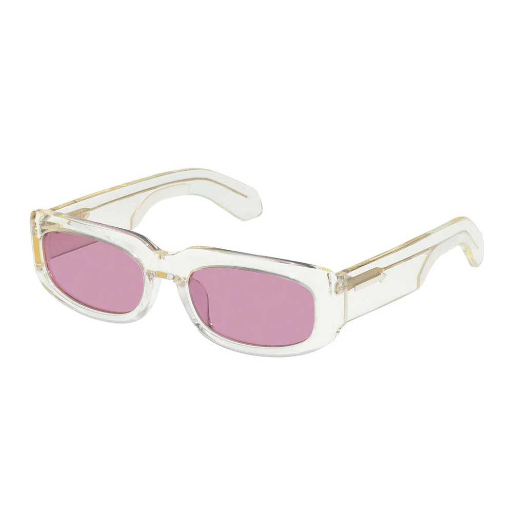 The Zahra sunglasses in crystal vintage clear offer a modern twist on a classic rectangular silhouette. The glossy transparent bio-acetate frames paired with dusty pink lenses are chic and playful. - Provides good UV protection - Provides good protection against sun glare - Crafted in premium bio-acetate to phase out chemical additives and optimise biodegradability at end of life. - Can be fitted with prescription lenses - Designed with enhanced nose pads and a flattering frame shape to comfortably fit all face shapes, including those with flatter or wider nose bridges and higher cheekbones. - Comes with a cleaning cloth and soft pouch case - For extended wear in bright sunlight a darker lens is recommended.