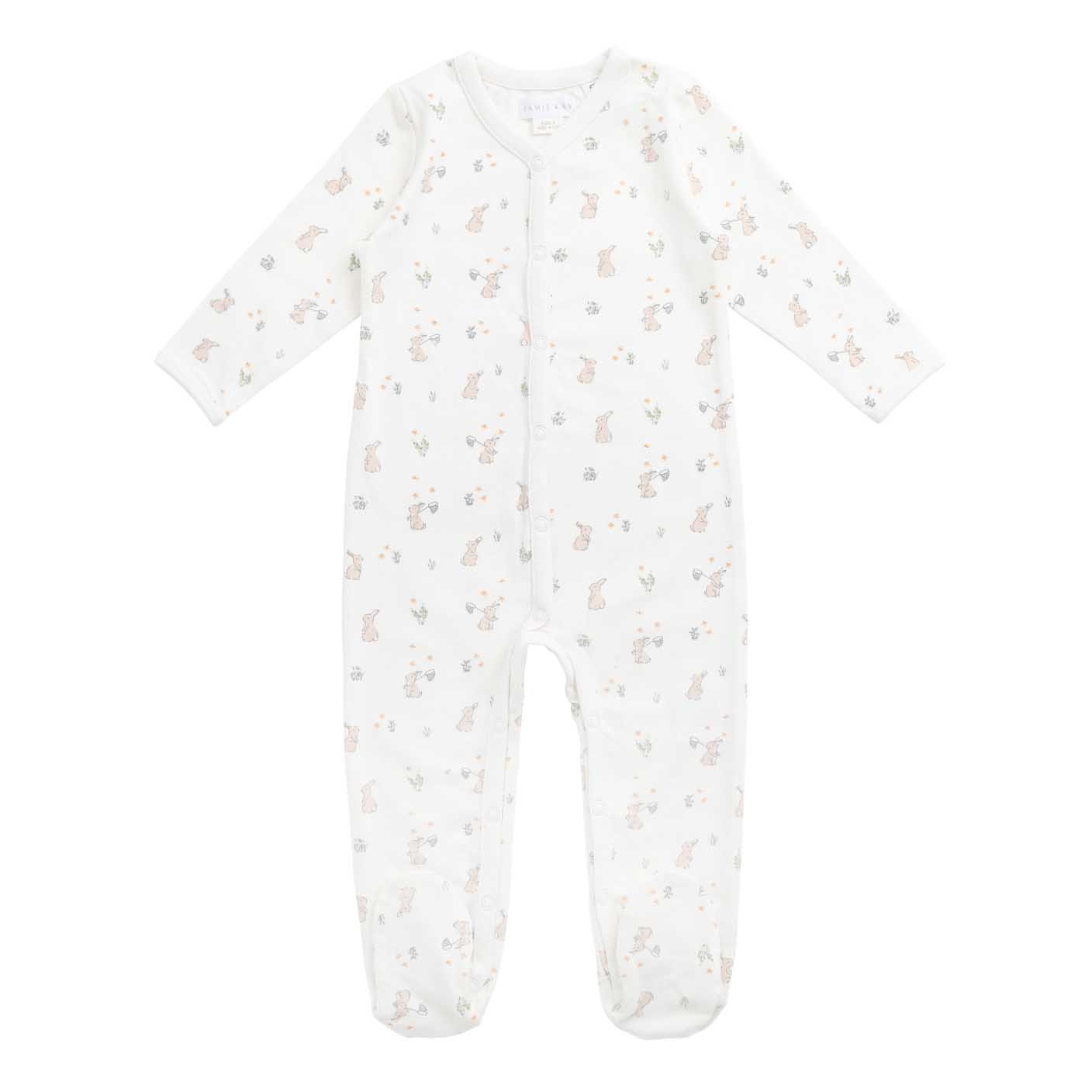 The Organic Cotton Murphy Onepiece in Lapin Jardin Crisp is a beautifully soft and practical piece for your baby’s wardrobe. Featuring a delicate all-over garden bunny print in soft tones, this footed onepiece is perfect for sleep, play, and everything in between.