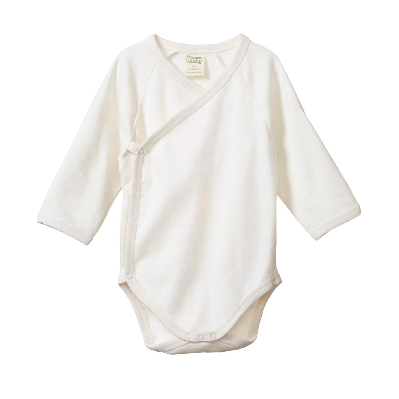 A great option for newborns to avoid having to pull garments over baby's head. Long raglan sleeves and a wrap-around style with a double layer at the front to keep baby’s chest warm. Easy to fasten with domes on the inside and outside, as well as the crotch and outside leg.