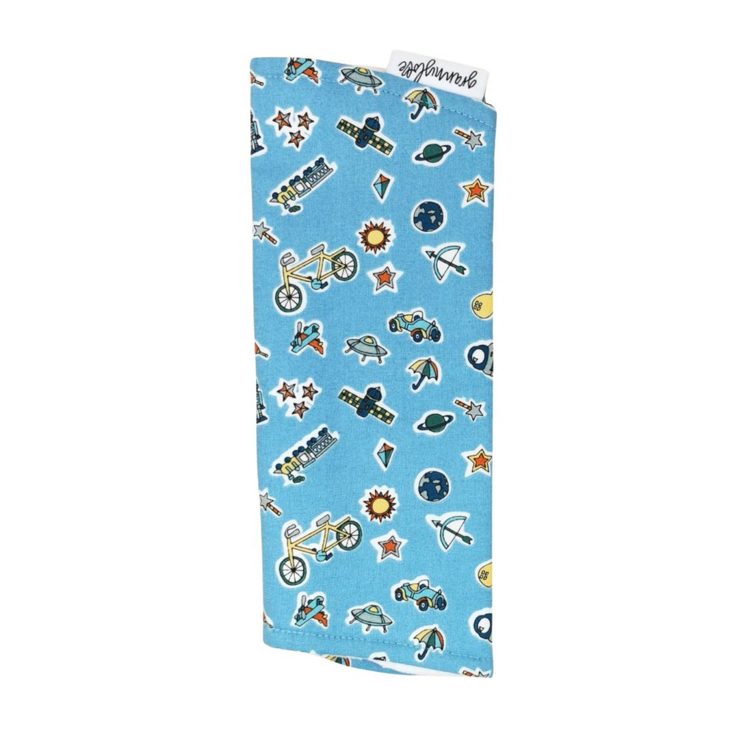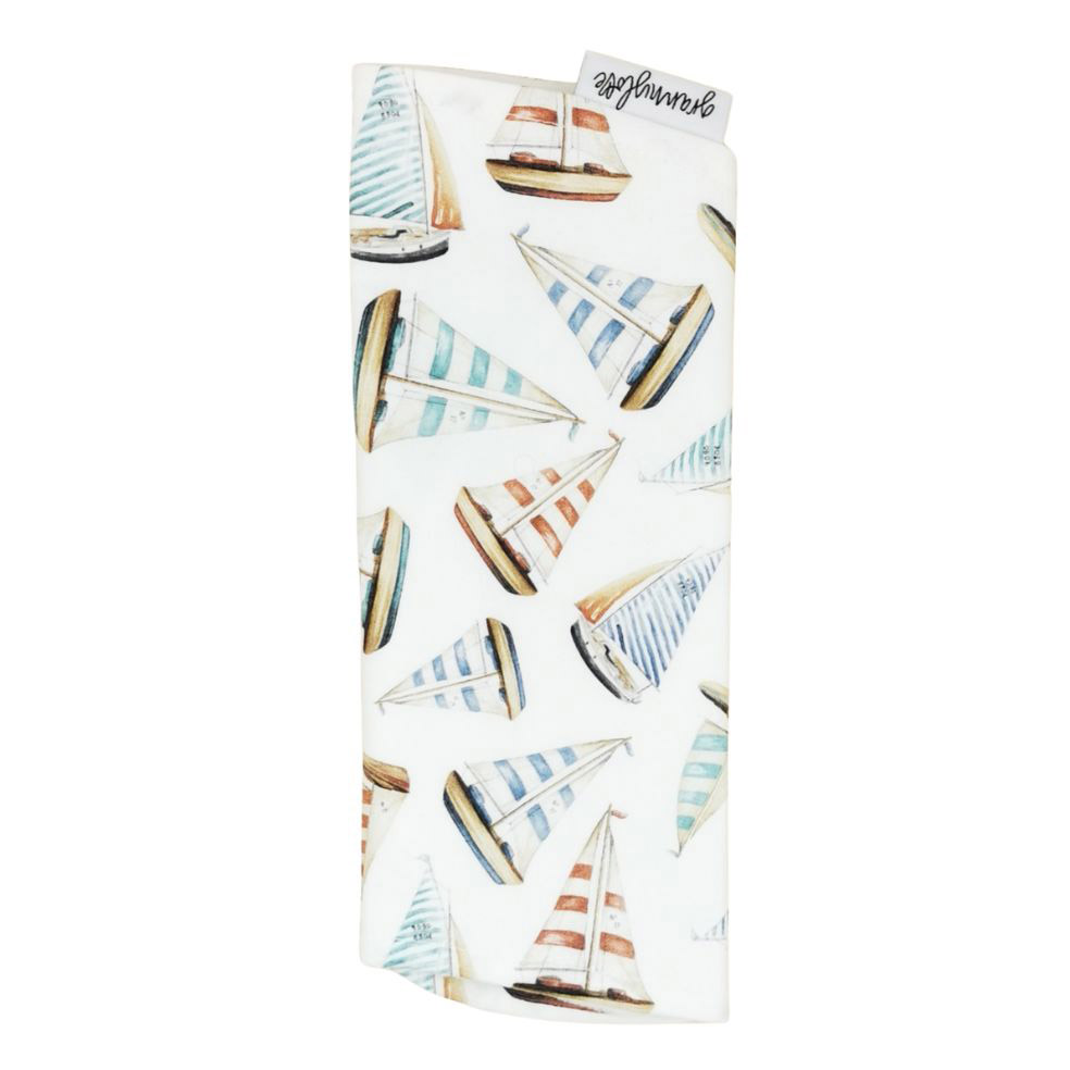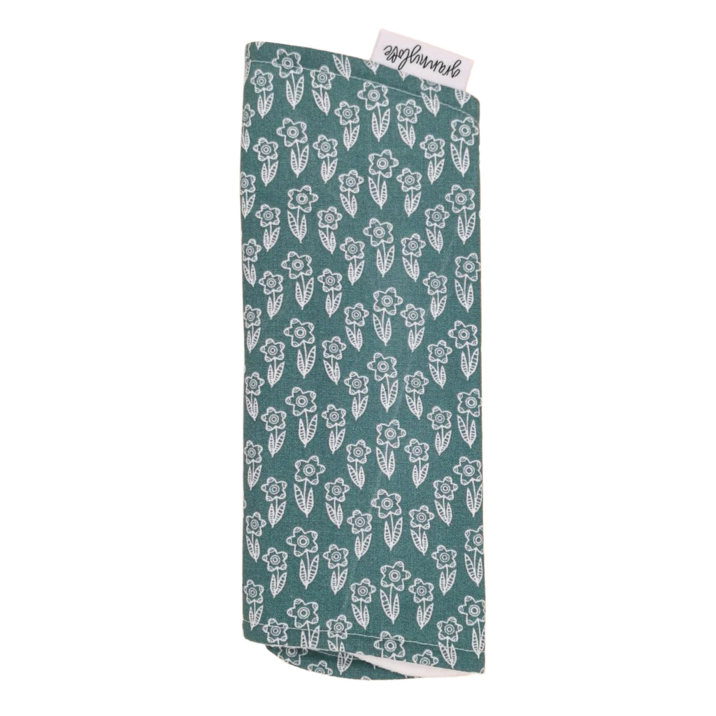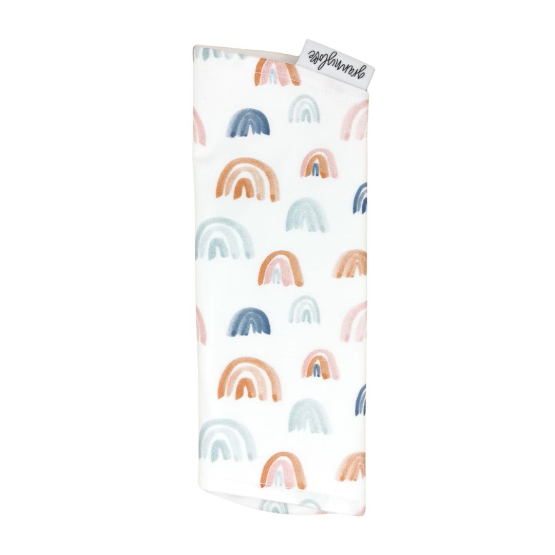 grannylove burp cloths are kidney-shaped, designed to fit snuggly over your shoulder, ready to catch any baby spills.