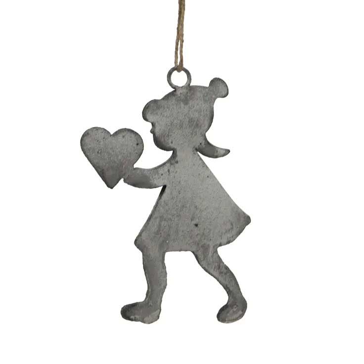 A delicate ash grey hanging girl decoration, bringing a sweet yet modern touch to your Christmas tree.