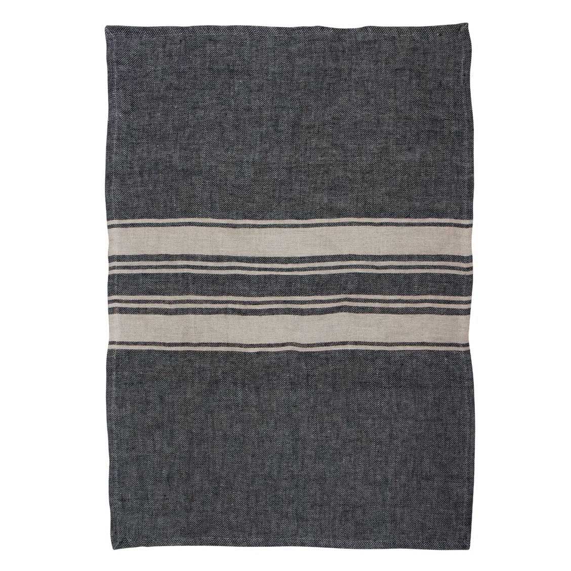 French Country Twill Tea Towel Charcoal with Narrow Natural Stripes