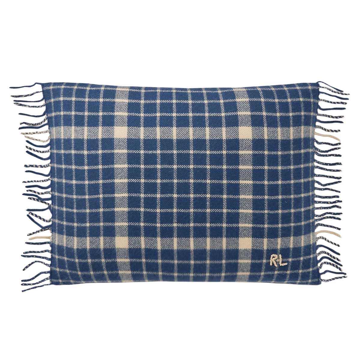 Soft brushed wool with a plaid pattern and fringe trim come together to create the Dorthy throw pillow. Ralph Lauren’s monogram logo is embroidered at the corner for a signature touch.