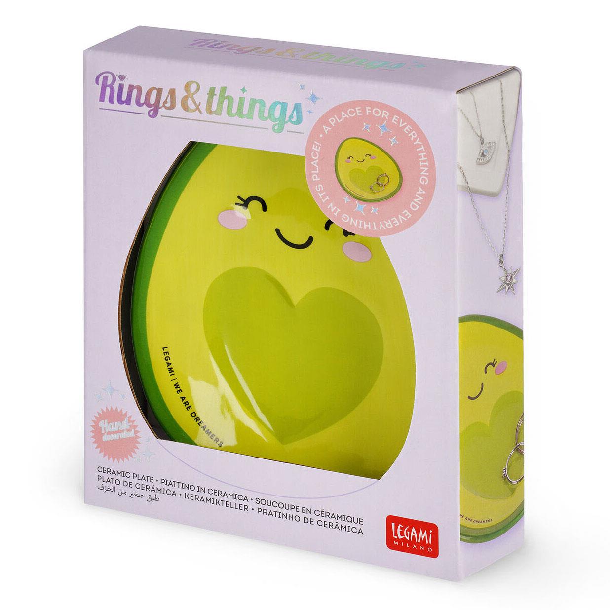 If the first thing you do when you get home is remove your jewellery and empty coins from your pockets, it’s good to know they’ll still be there in the morning. The Avocado themed Rings & Things Ceramic Plate by Legami is the most original and unique pocket emptier on the web. Its hand-finished details will add a touch of class to your hall, bathroom or bedroom.