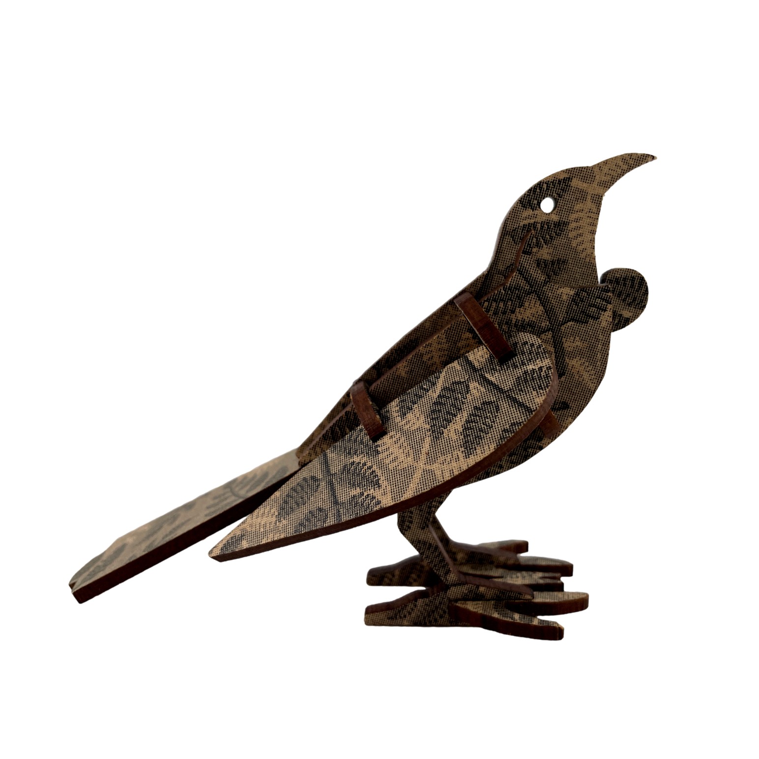 The Abstract Designs Tui A6 in fern black features a sleek silhouette of the native tui bird. Its compact size and bold colour make it a striking addition to any space.