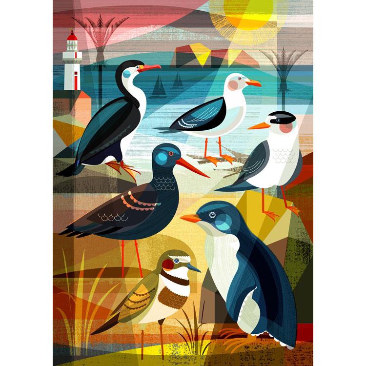 Ellen Giggenbach Beach Birds Of NZ Matted Print