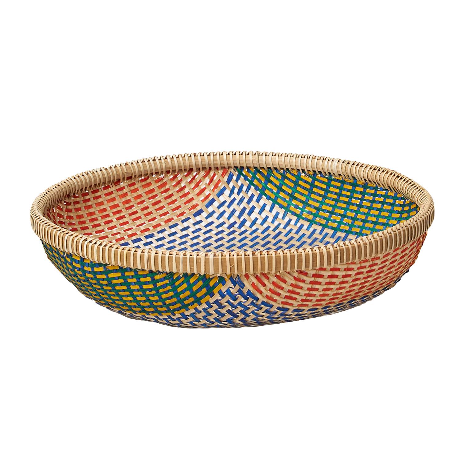 Città designer Nikolai Sorensen drew inspiration from Vietnam’s vibrant street markets, where vendors display fresh produce in large, shallow plastic baskets. This reinterpretation replaces plastic with sustainable bamboo and features a bold, dynamic colour palette. Display as an art piece or as a functional storage solution.