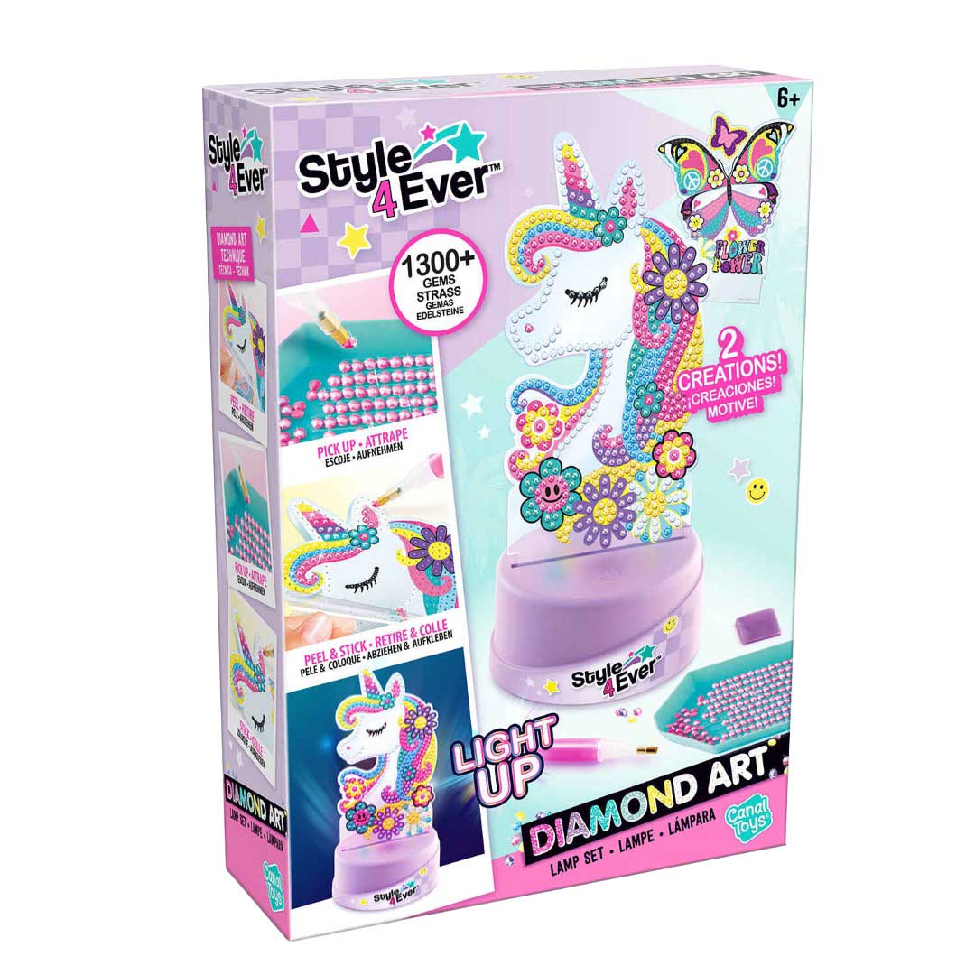 Bring sparkle and light into your space with the Diamond Art Lamp Set. Choose from enchanting unicorn or butterfly designs and decorate them with over 1,300 glittering “diamond” gems. Once finished, place your decorated panel on the LED light-up base to illuminate your work. The gentle glow adds a magical touch to any bedroom or craft corner, turning your art into a functional keepsake. A perfect blend of creativity and decor, this kit inspires imagination while offering a beautiful display to show off your style.