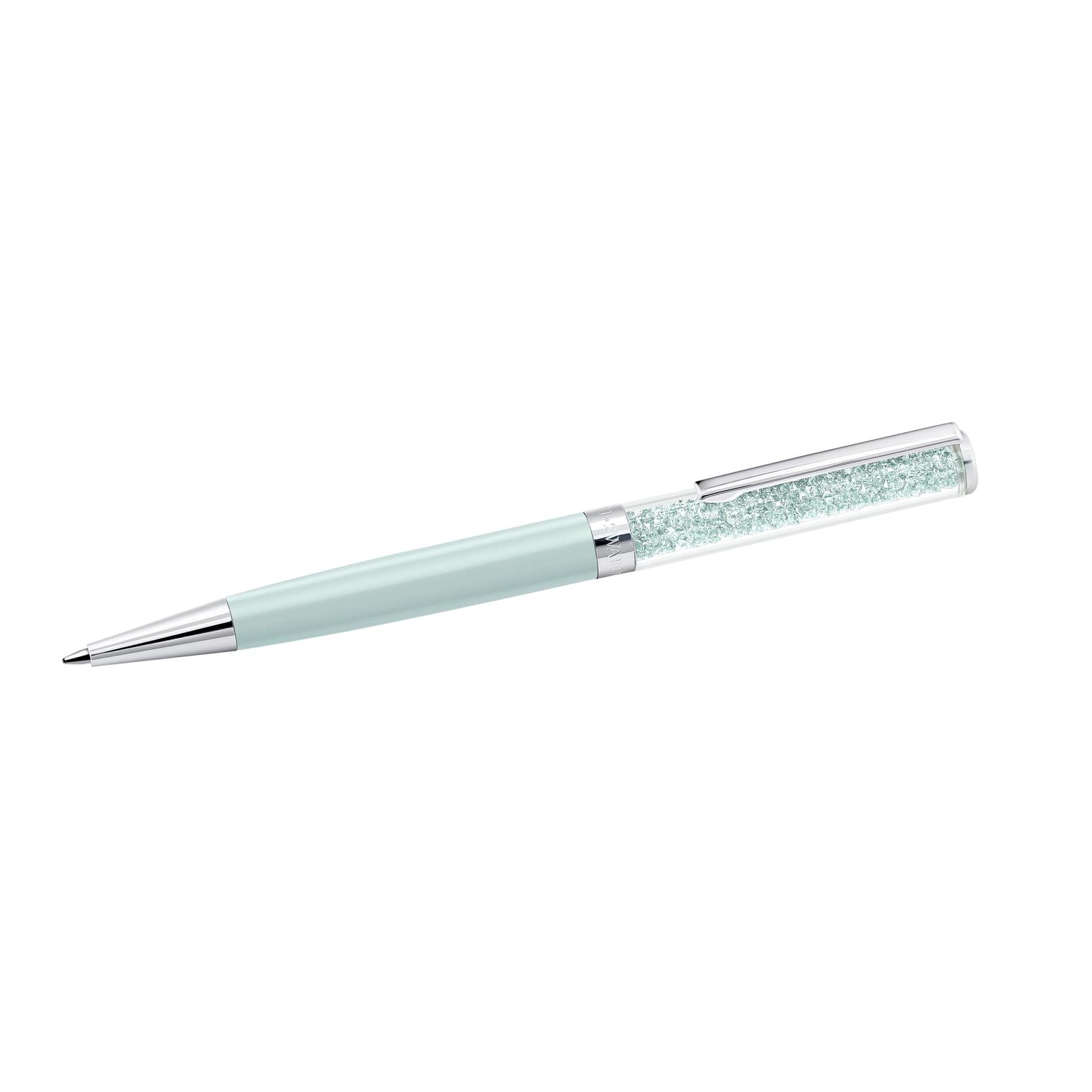 Add a touch of sparkle to everyday tasks with this new and refined edition of our Crystalline Ballpoint Pen, filled with light green crystals. Delivered in an elegant pouch, the pen features a light green lacquered metal barrel, a chrome metal clip, and two Swarovski logos around the middle. The high quality ballpoint ink refill can be replaced. An ideal gift. Refills of black and blue inks are available in Swarovski stores.