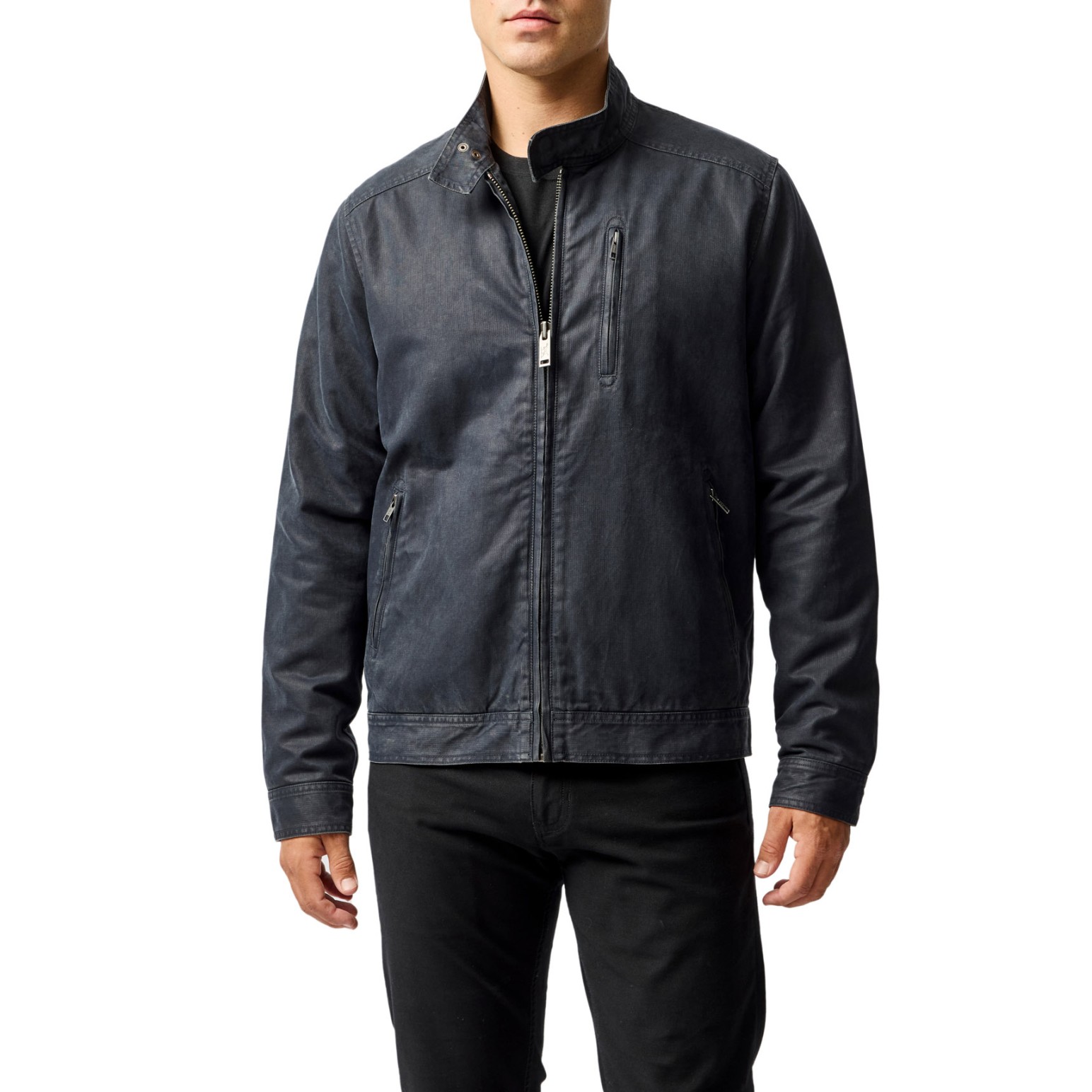 A clean-lined harrington jacket in a distressed shower-repellent canvas. A versatile and iconic style rooted in our outdoor heritage. The robust PU coated fabric is balanced with a straight cut and sleek zip pockets for a streamlined look.