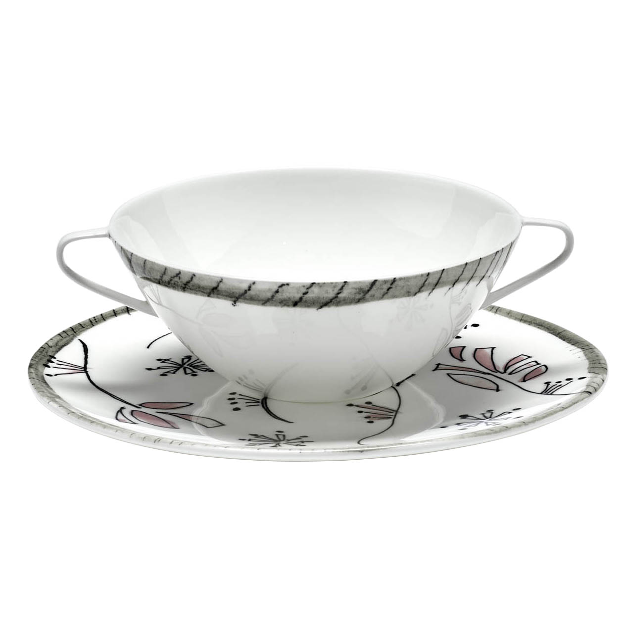 Marni Midnight Flowers Soup Bowls & Saucers Set Of 2 - Fiore Rosa