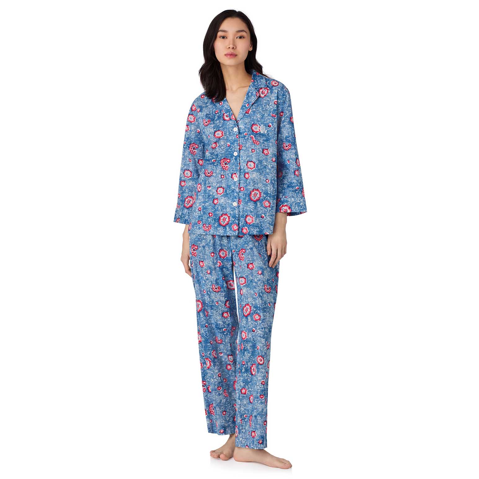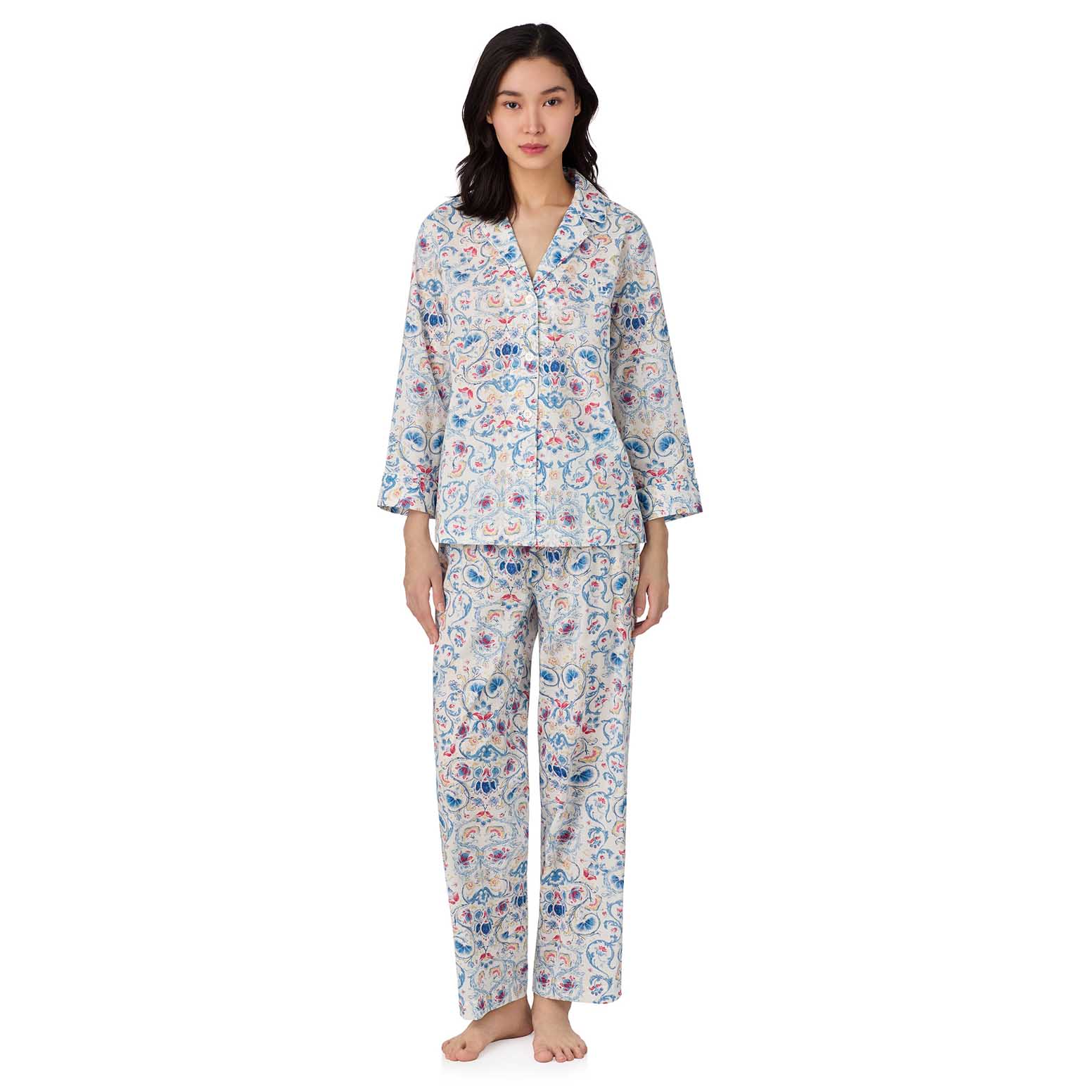 Lauren Ralph Lauren Cotton Lawn 3/4 Sleeve Notch Collar Pajama