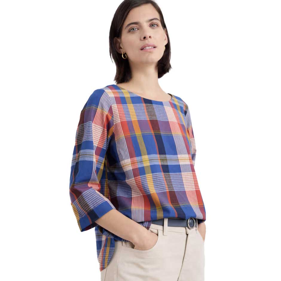 Our checks are created with yarn-dying, where the threads are dyed before they are woven. It gives the colours on this simple boat-neck summer top a beautiful depth. Pair with the coordinating Susan Skirt as an easy alternative to a midi dress.