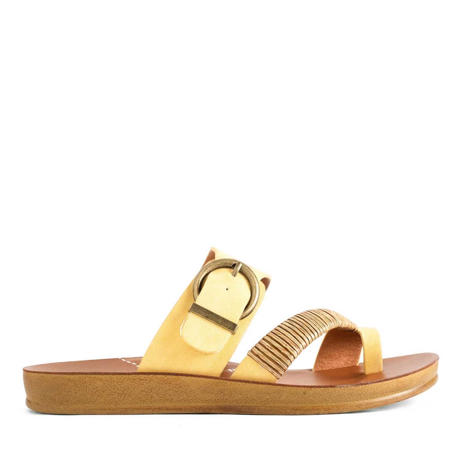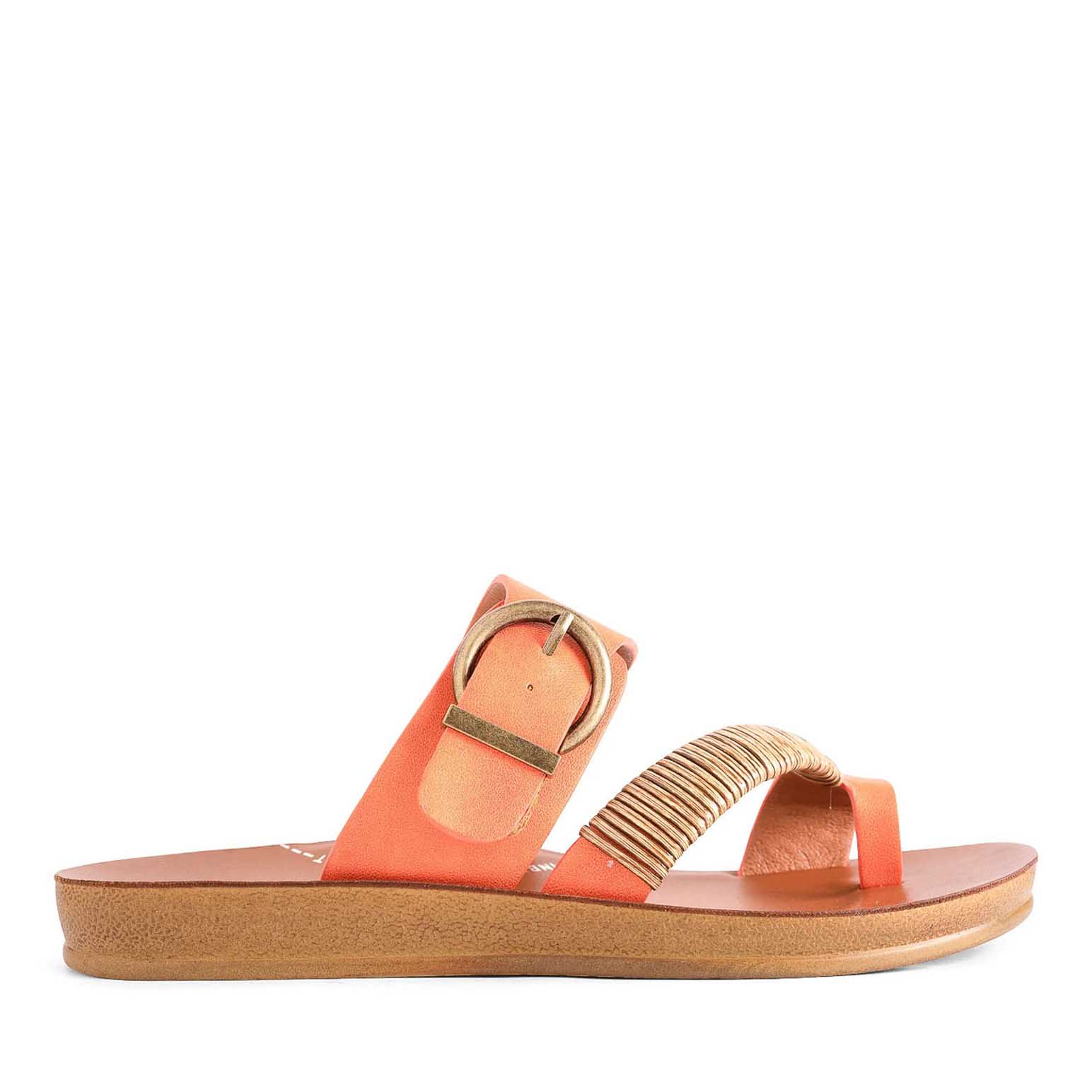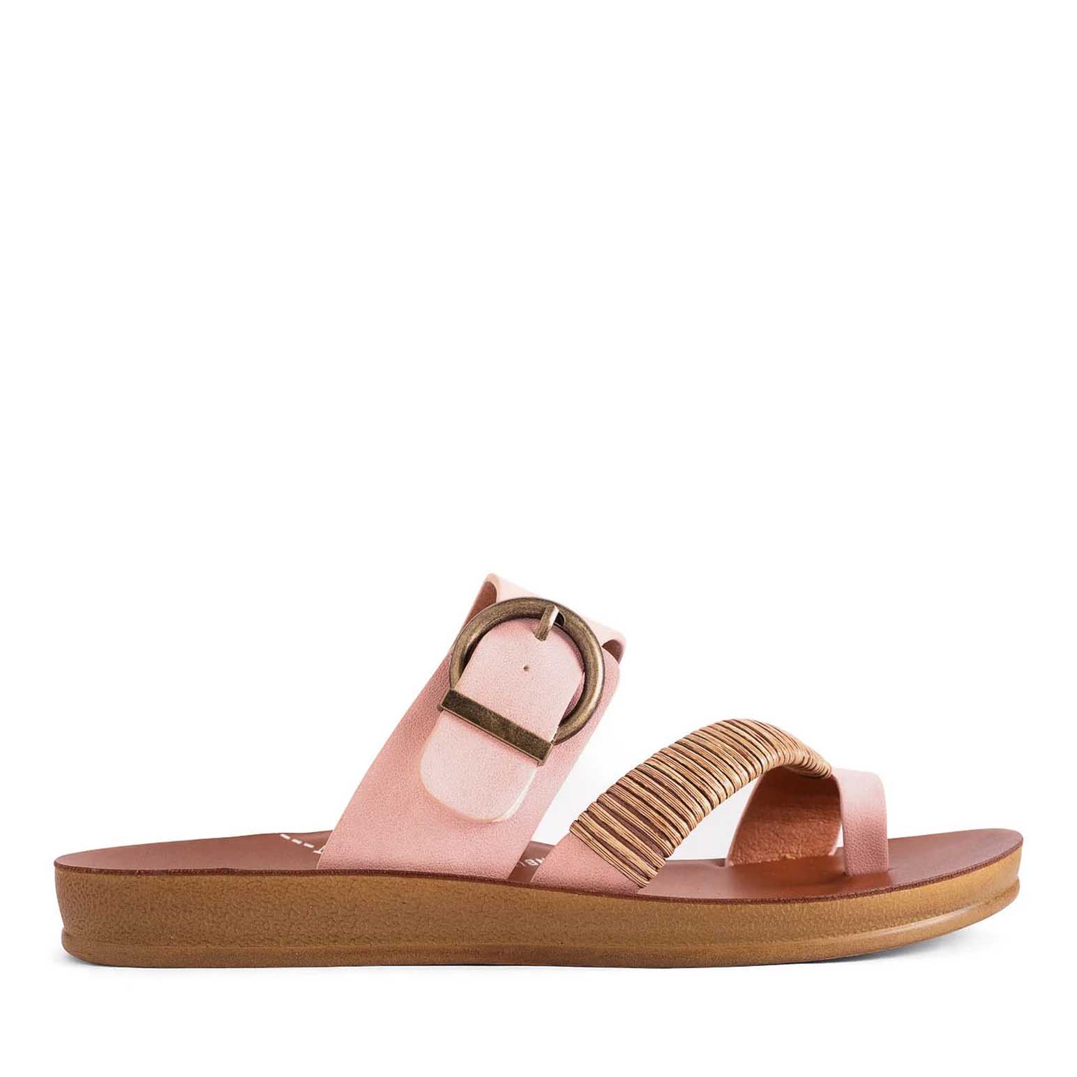 Los Cabos captures the spirit of fun in the sun with their Bria sandal. The ease of a slip-on is given a touch of natural beauty with our woven bamboo wrap gracing the toe strap, whilst the antique round buckle on the back strap adds a treasure box accent. Ideal for resort escapes, beach walks or just a shoe to slip on when you need to rush out the house.