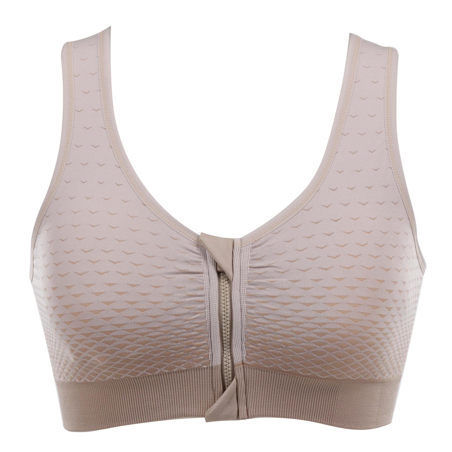 - The Active Bra is a front-closing, wire-free sports bra with a rounded neckline and racerback. Top and bottom zipper covers protect against skin irritation. With removable pads included, this comfortable bra works well for various sporting activities.