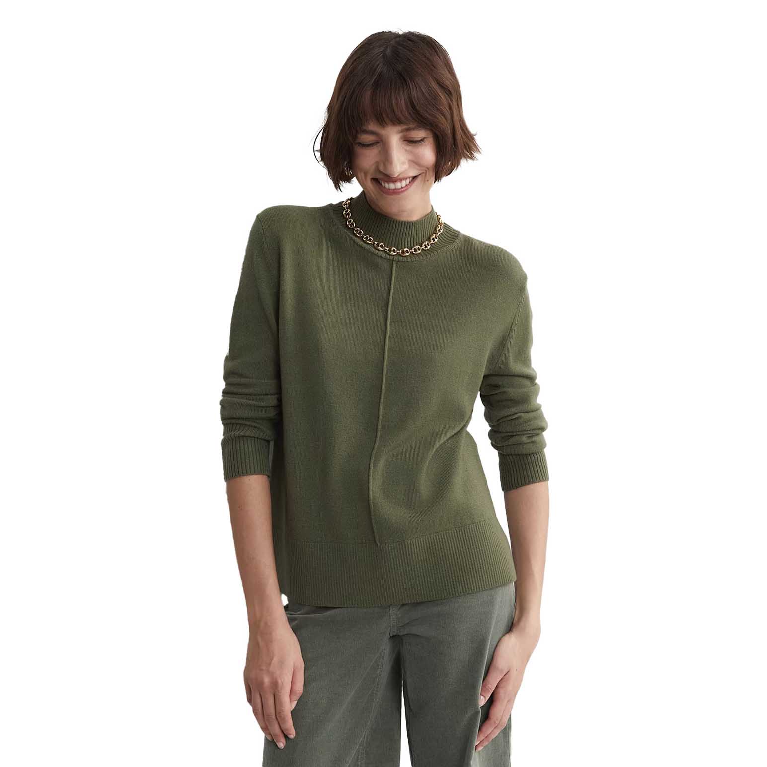 The Cass Wool Sweater has been made from a woolmark certified merino wool fabrication. This fully fashioned knit has a funnel neckline, a front design line, long sleeves, ribbed trims, a side split hem and a relaxed fit. Wear this sweater over a button-down for a layered finish.