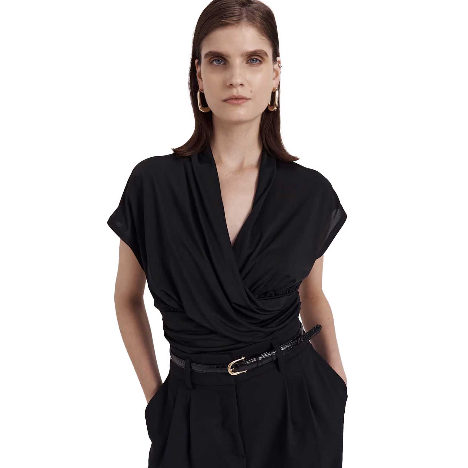 The Sophie Wrap Top features flattering draping and ruching in a stretch fabric. Pair it with the Tia Capri Pant or the Tia Slim Leg Pant for a streamlined silhouette.